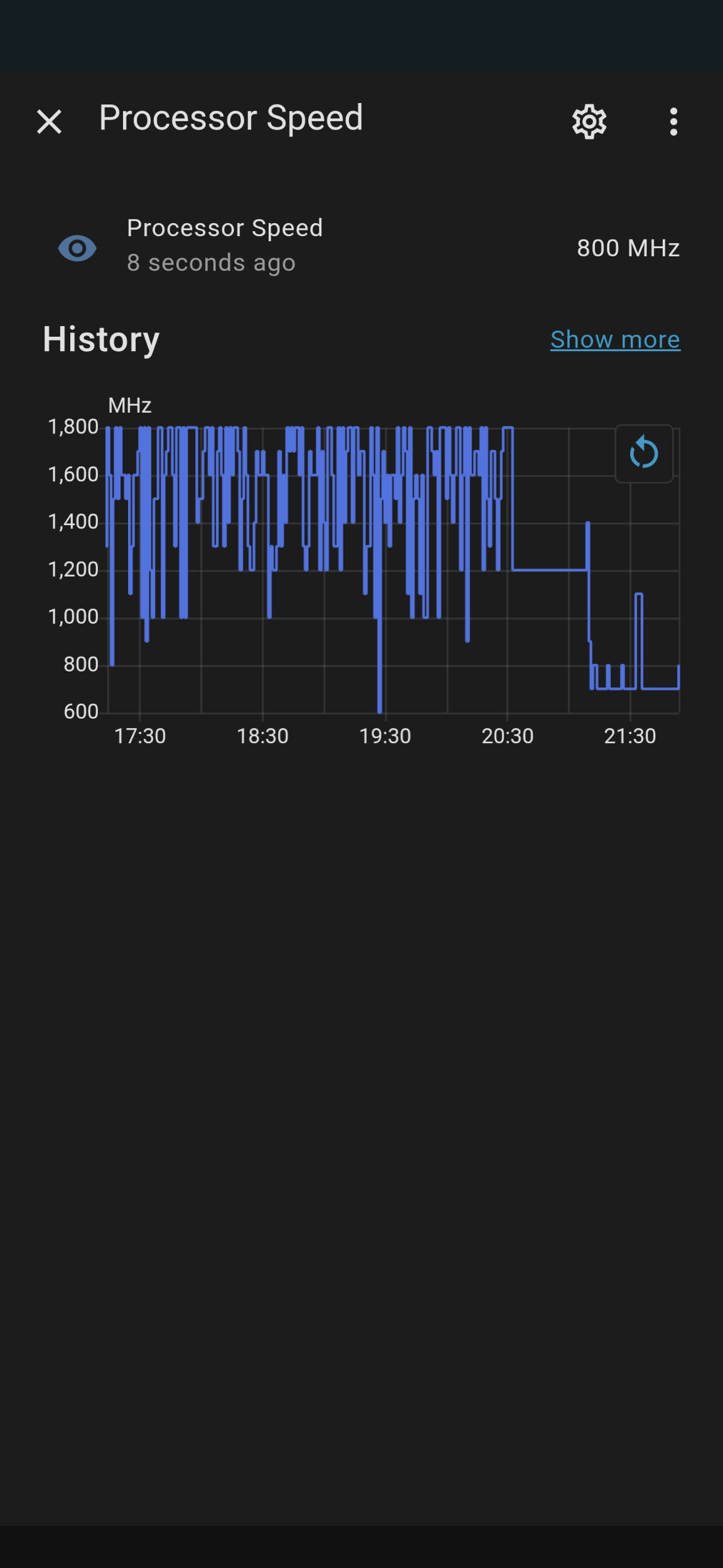 On OS 15.2 the CPU would go between 1800MHz and 1200MHz, with times where it dropped to 1000MHz, and the very occasional spike down to 800MHz, and a rare spike down to 600MHz.