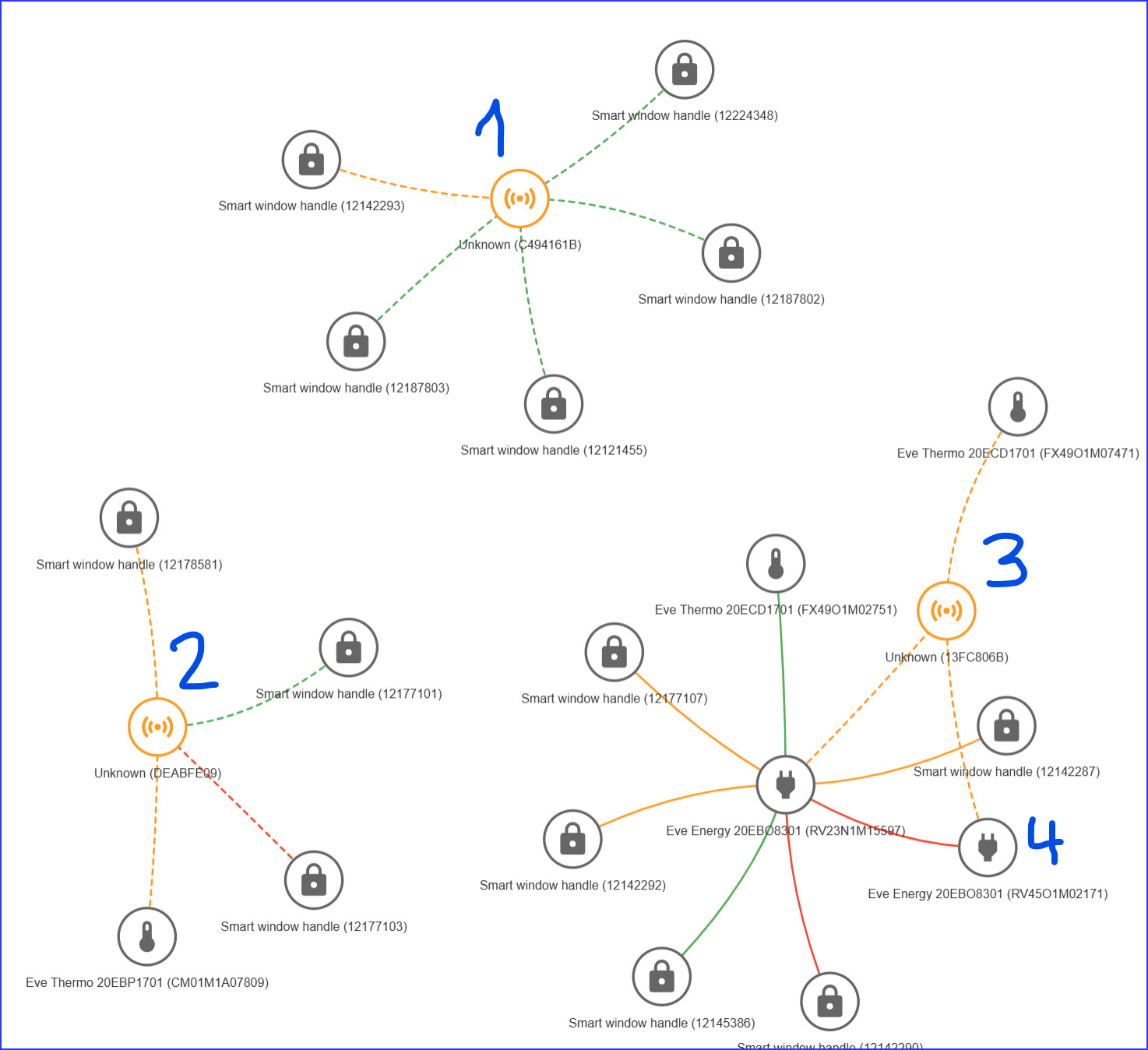 is an Eve plug that should display as such but is represented as another border router. I can control devices on this node from HA, but the mesh shows them as unconnected.