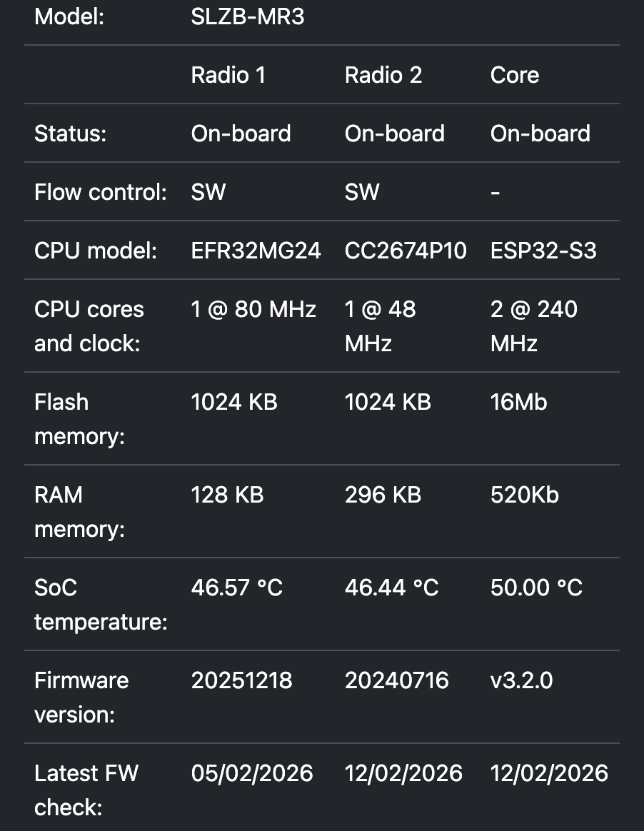 Did try downgrading slzb-mr3 firmware SLZBOS 3.2.4->3.2.0 however that didn’t make a difference either.
