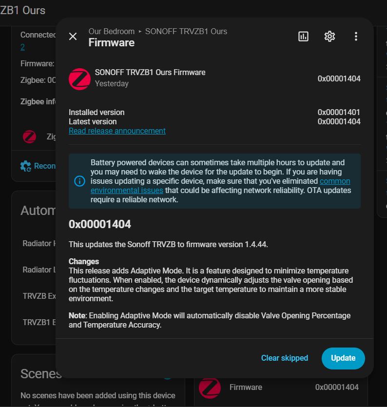 I received update to Z2M to support TRVZB fw 1.4.4 “Smart temperature control”