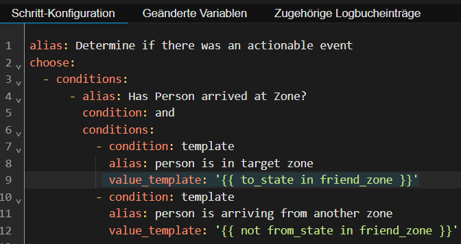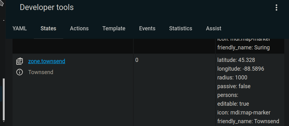 Now if someone arrives at home, the automation triggers but does not send a notification because the condition āto_state in friend_zoneā in āHas Person arrived at Zoneā is not met, since in the state, the zone is named āhomeā, but the friend_zone is named ānow53ā.