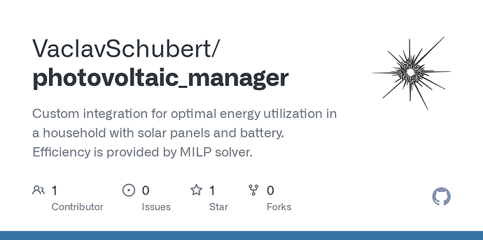 It’s unfortunately (at the moment) designed only for setups using Czech spot electricity prices, a SolaX inverter via Modbus, and Forecast.Solar. The integration predicts photovoltaic production and household load, applies battery constraints, and calculates the most cost-effective strategy for grid import and export on an hourly basis. The only direct action it takes is managing when energy is imported from or exported to the grid.