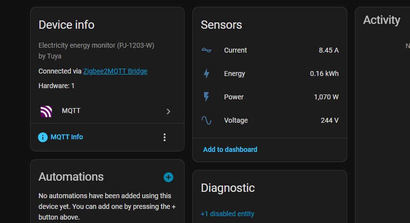 It would not show any entities in ZHA, so I went with Z2M and they are the only entities revealed. Tuya PJ-1203-W control via MQTT | Zigbee2MQTT mentions power factor, but I can’t see it in yaml.