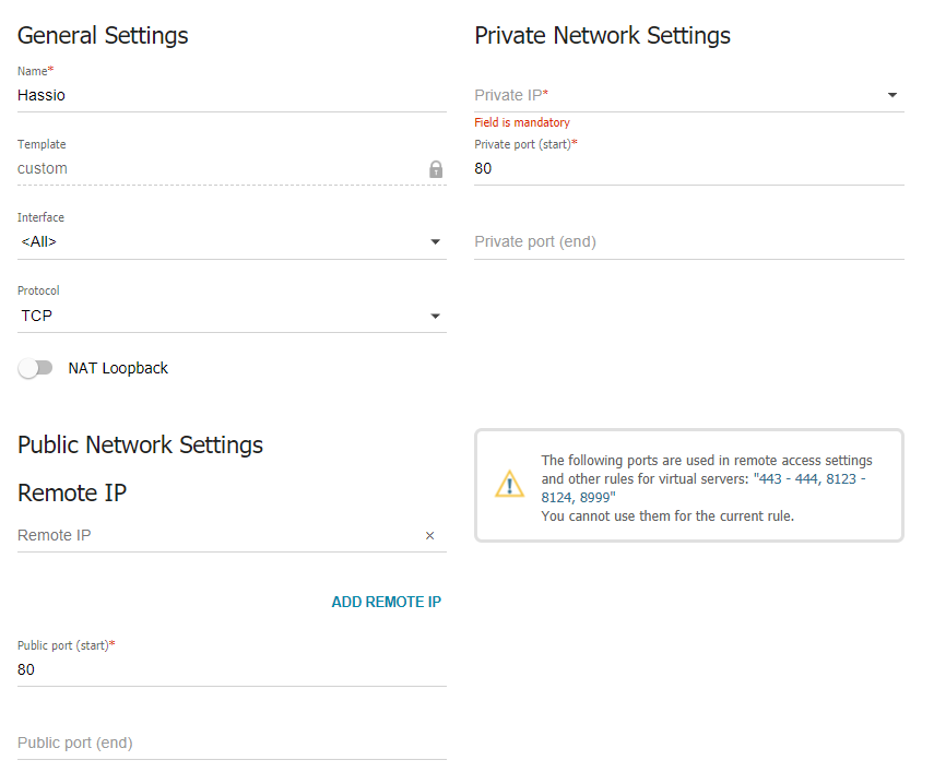 I was looking for a way to list the virtual servers already set up but I dont see it. The message that you cant use ports 8123-8124 etc… looks like it has imported your previous port forwarding rules when you did the update.