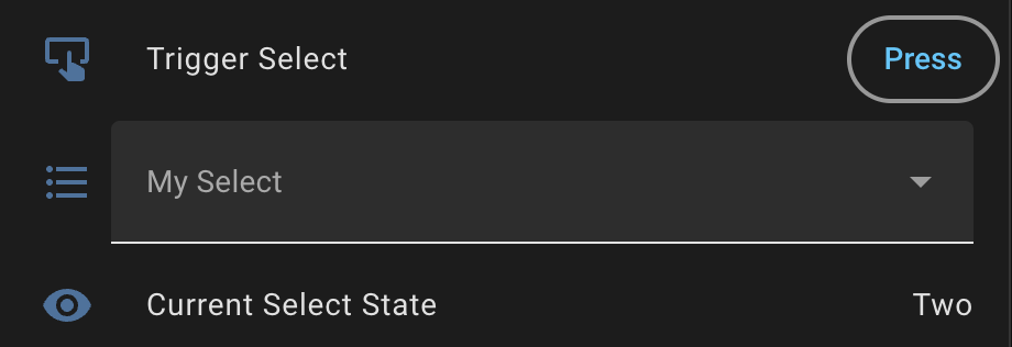 I have a select template where the options (One, Two, Three) and state (Two) are set by a trigger (a button press).