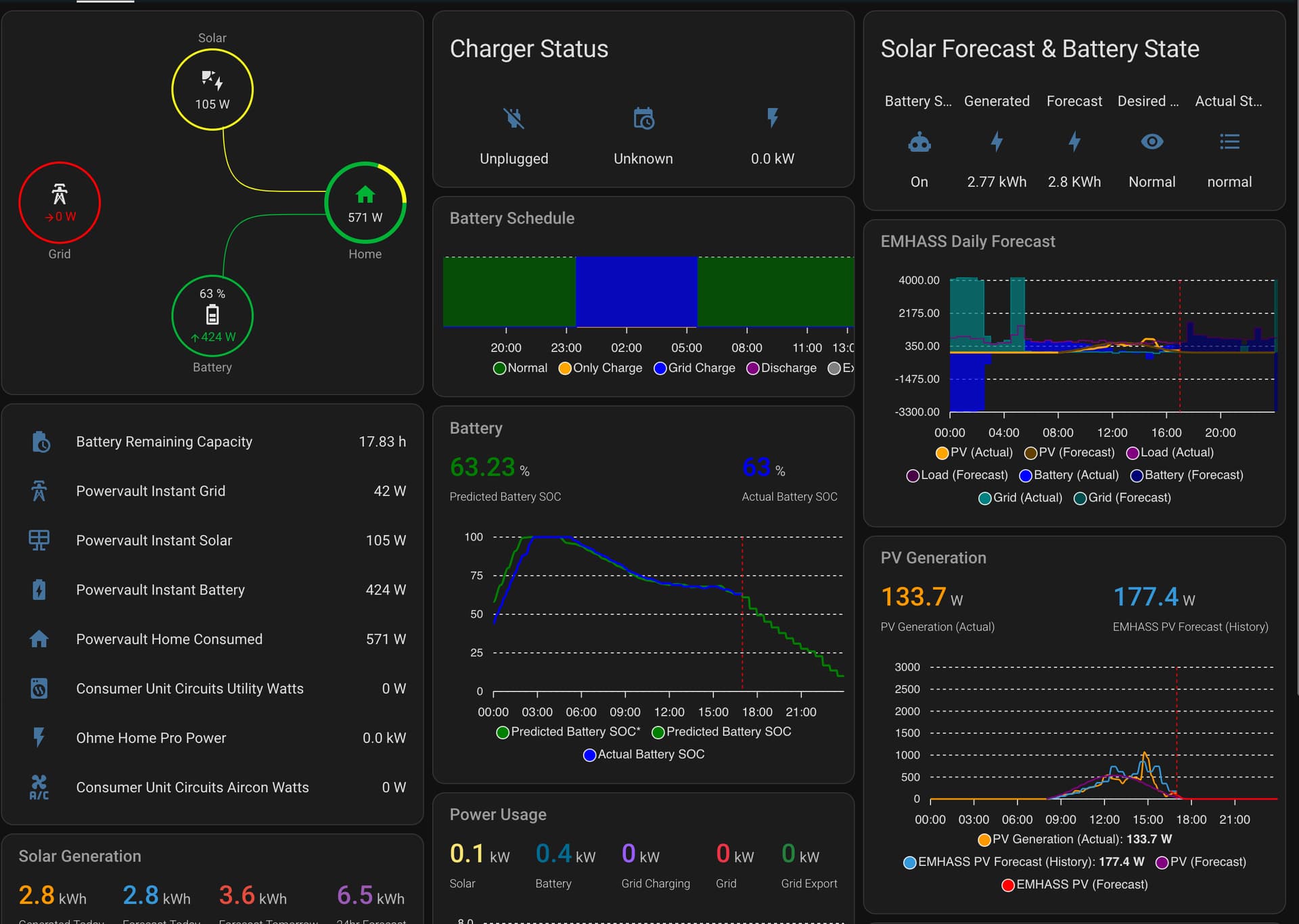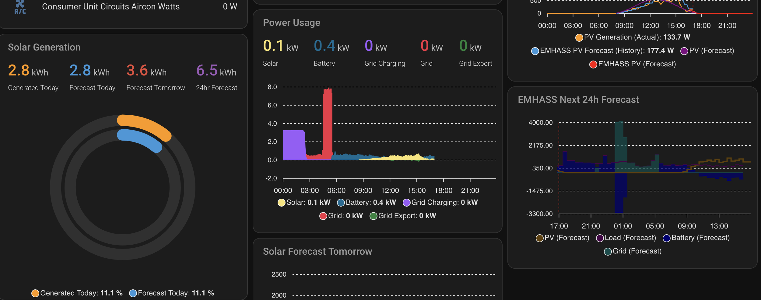 I won’t go into detail about this, as I think if you import it into HA then it’s readable and you can follow the logic. There’s obviously specifics to my situation, e.g, if the car is charging (e.g. in the middle of the day) and there’s not already a forecast planned, and if the battery is low already, then take advantage of the cheaper power and also charge the house battery.