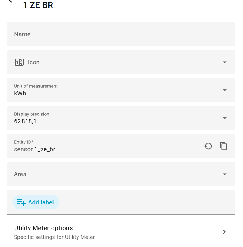 and next based on it build finally energy state as utility meter sensor “1 ZE BR”: