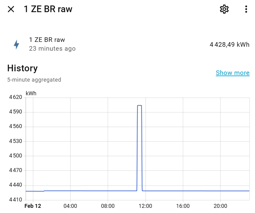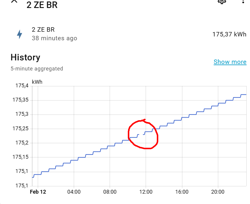 This create a hight peak (is equal to current energy value, in my cause about 175 kWh). When the flat “2” sub-energy meter become available back to correct state then the peak value back to correct value