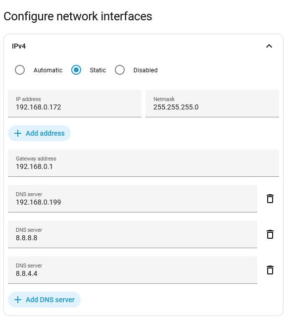 I’ve recently got a new modem from my internet provider. With my old one the IP of HA was at 192.168.31.172, with the new one it’s 192.168.0.172, so I changed the “31” to “0” in the HA settings under System > Network > IPv4: