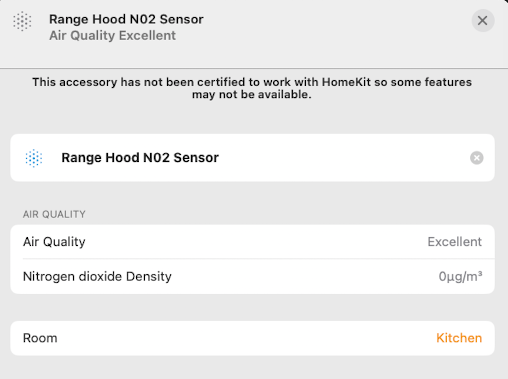This appears in Apple Home as an air quality sensor (“Excellent”) which you can drill into for the current value: