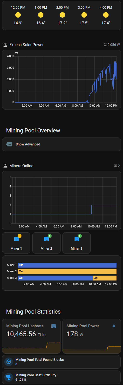 - If requirements are not overridden, subtracts the miner’s power need from the remaining excess solar power variable (to allocate it for this miner)
