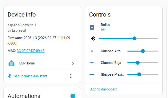 Nota, está en estado beta, la hice para una persona con diábetes tipo uno que usa Dexcom, pero sigo trabajando para que los parámetros de las alarmas sean ajustables desde Home Assintant, la compré por Aliexpres (la que tiene bateria y touch screen) y se la regalé a mi sobrina, que usa mmol/L claro, que hay que hacerla compatible con otros usuarios, pero de momento no tengo una nueva Specball V2 para experimentar. El repositorio usa las imagenes de Mario Bos, algunas adicionales que yo edité, pero en el repositorio donde yo me basé, estan muchas otras disponibles.
