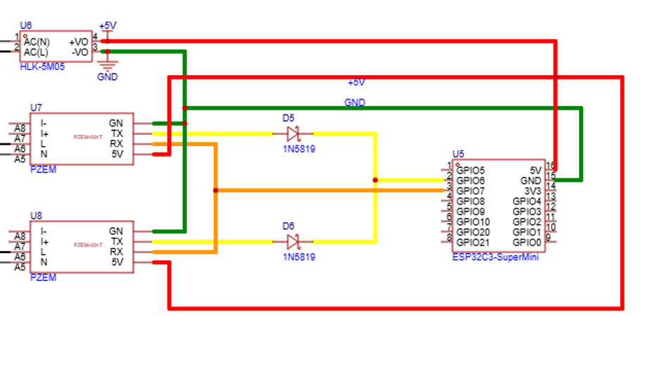 PZEMs are directly connected to TX-RX (parallel connection with no pullup resistor or diode)