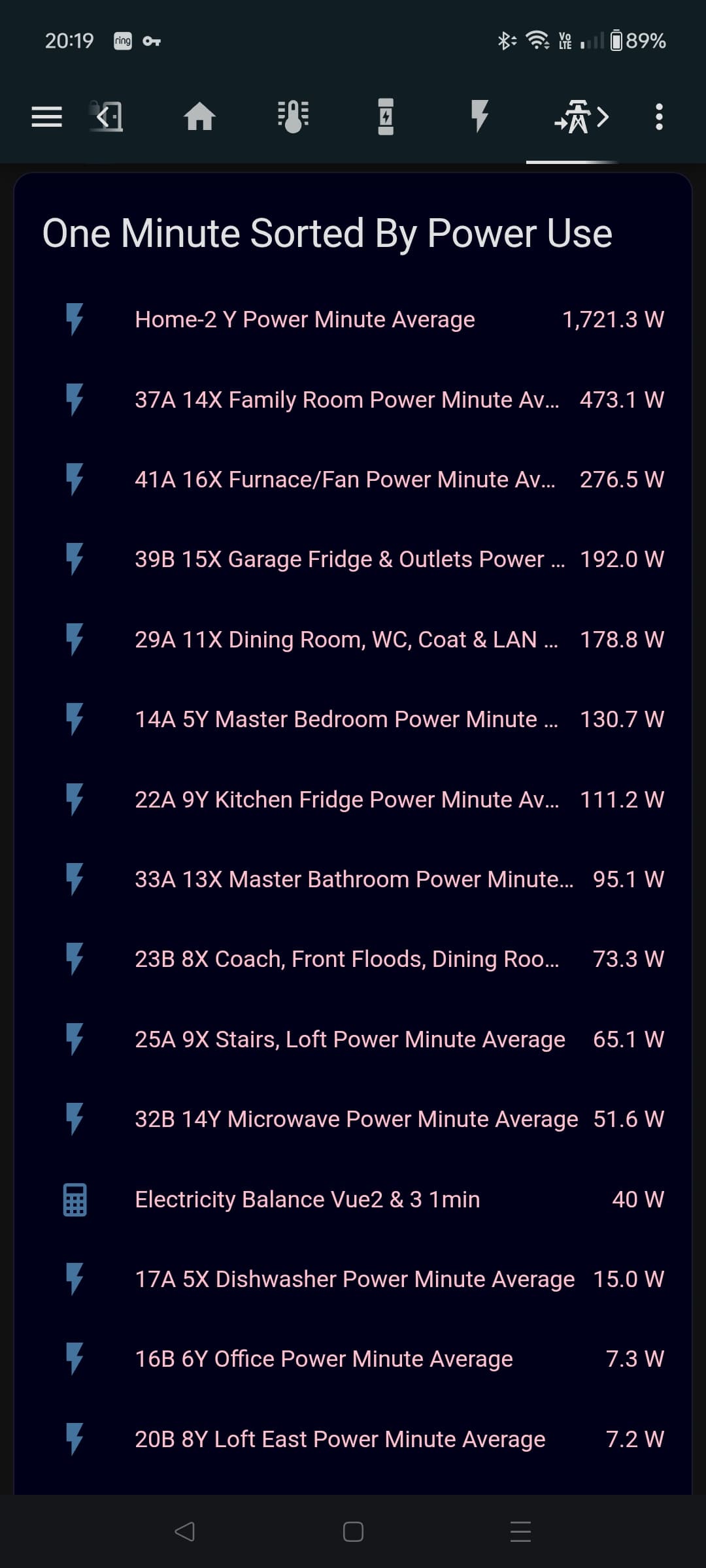 I would like to also display the CT sensor power as a percentage as these change for each sensor. Currently there are 31 sensors (i have one spare). Ideally I would like the percentage displayed on the same line as the power value and to change as the values change. Also I wish to keep the list sorted, high to low.
