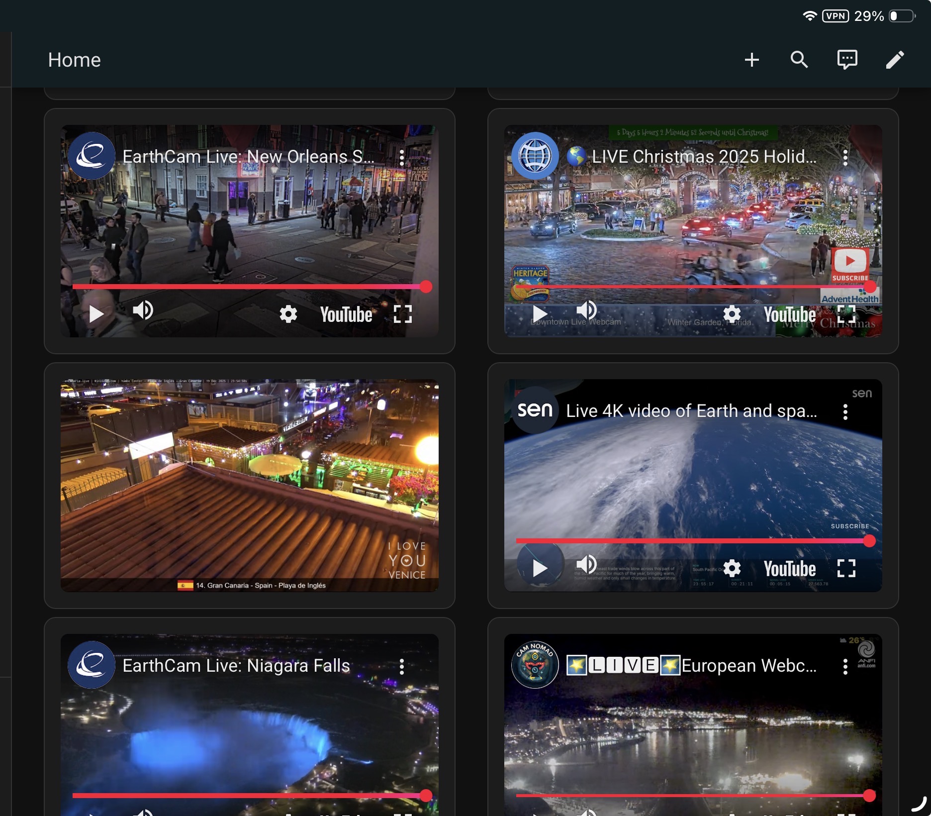 Been having some fun embedding realtime web cams into its own area page using the HACS custom YouTube video card.