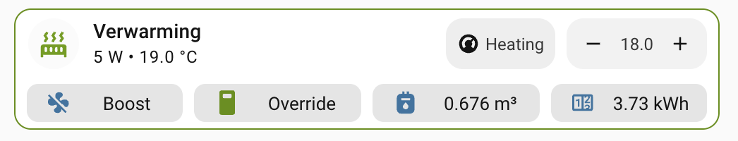 Nice card! I found I only really used the daily accumulated energy anyway so I repurposed the metering plug. I would be interested to know what we lose when switching to an OpenTherm thermostat. There’s plenty of options for that, including Zigbee connected ones which I would prefer over wifi.
