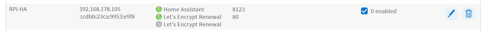 So I have this autometion, triggered at 3 am every day that check is the certificate has expired (checking the timestamp of sensor created by the “Certificate Expiry” integration); if it has expired, the automation enables port forwarding on the fritz!box, trigger the renewal process, wait that “Let’s Encrypt” stops running (or wait for a 60 seconds timeout, in case something goes wrong), disable port forwarding - job done.