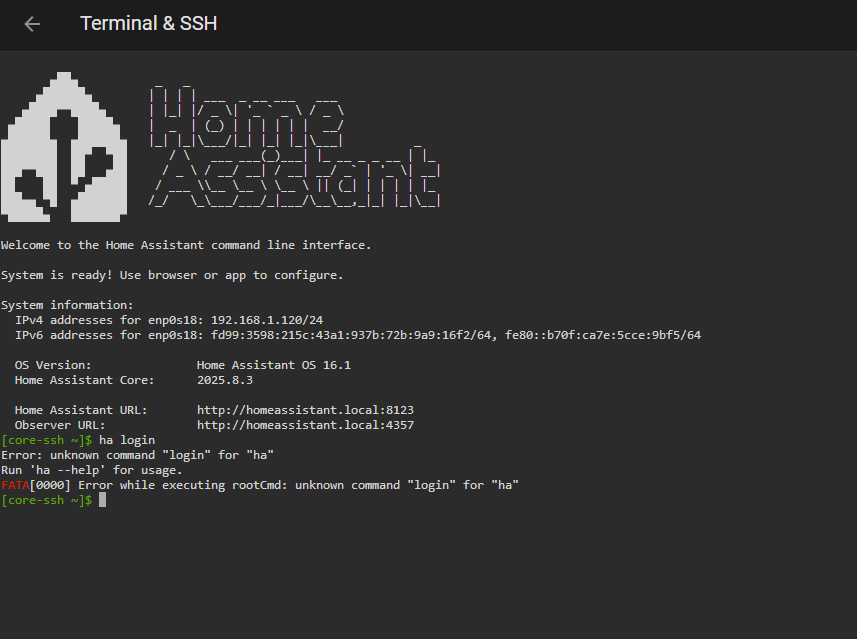 But on this remote machine, when I connect via either SSH ad-on, NMCLI is not available, even after running login. I’m still in a container, not on the base-os.