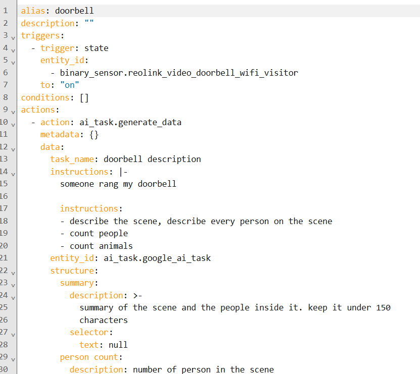 The current automation should be something like ‘when doorbell is rang, use ai to describe what is on the picture of the reolink doorbell and both send a notification to the Alexa and phone’.