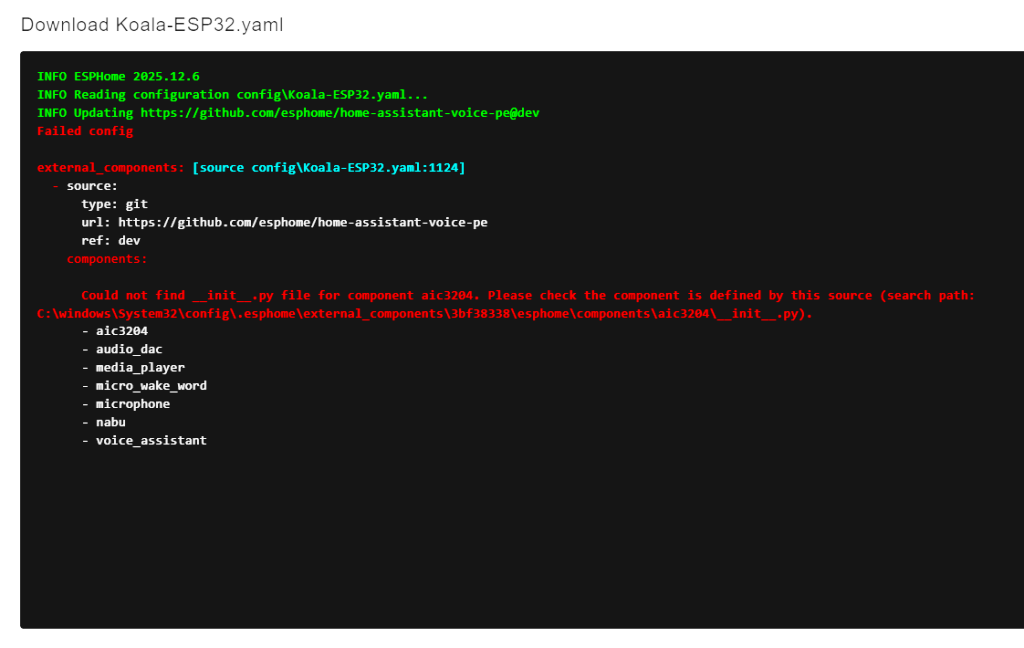 INFO Compiling app... Build path: C:\windows\System32\config\.esphome\build\koala-satellite