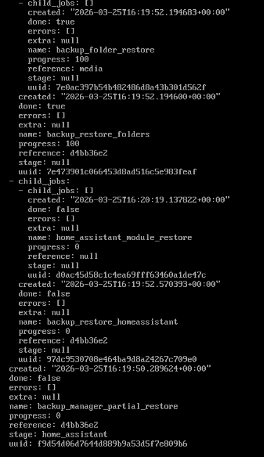 I am running a restore ona clean install all day now and never make it through the restore (REALLY waiting long >1hrs) and always get no progress in the jobs: