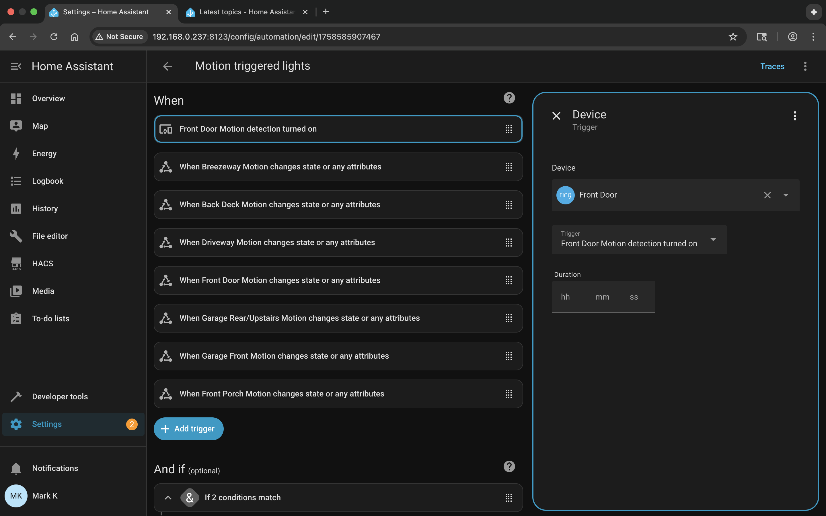 While other topics indicate this cannot be set up through the GUI and it has to be configured through YAML by editing configuration.yaml, this IS NOT true (at least 99%–will explain shortly). I programmed this to work through the GUI, and it triggers other smart lights (TP-Link KASA) to come on for 2.5 mins, then turns the lights off.