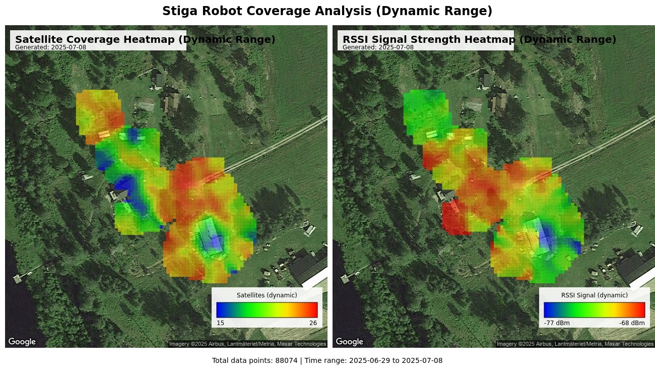 Does anyone here have a Stiga A series Robot Mower, like a Stiga A1500 (that we have). I have reverse engineered and implemented an API and some diagnostic tools (battery charge, consumption, signal/satellite heatmaps, etc) and would be interested in a couple of people who also want to test out the API/tools. You need some level of technical competency and I can help. The tools are implemented in NodeJS and I operate them on Debian box. I do not use home assistant, so any integration with it is not my primary interest : if you want to do that, you can take the journey and I can help you. The API and tools are here: GitHub - matthewgream/stiga-api: Stiga API for Robot Mowers A-series (2025). And here’s an example of the heatmap !
