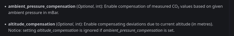 I didn’t use the barometric pressure compensation but altitude compensation (set to 303 m in the esphome yml above). Which is exclusive with the pressure as per documentation.