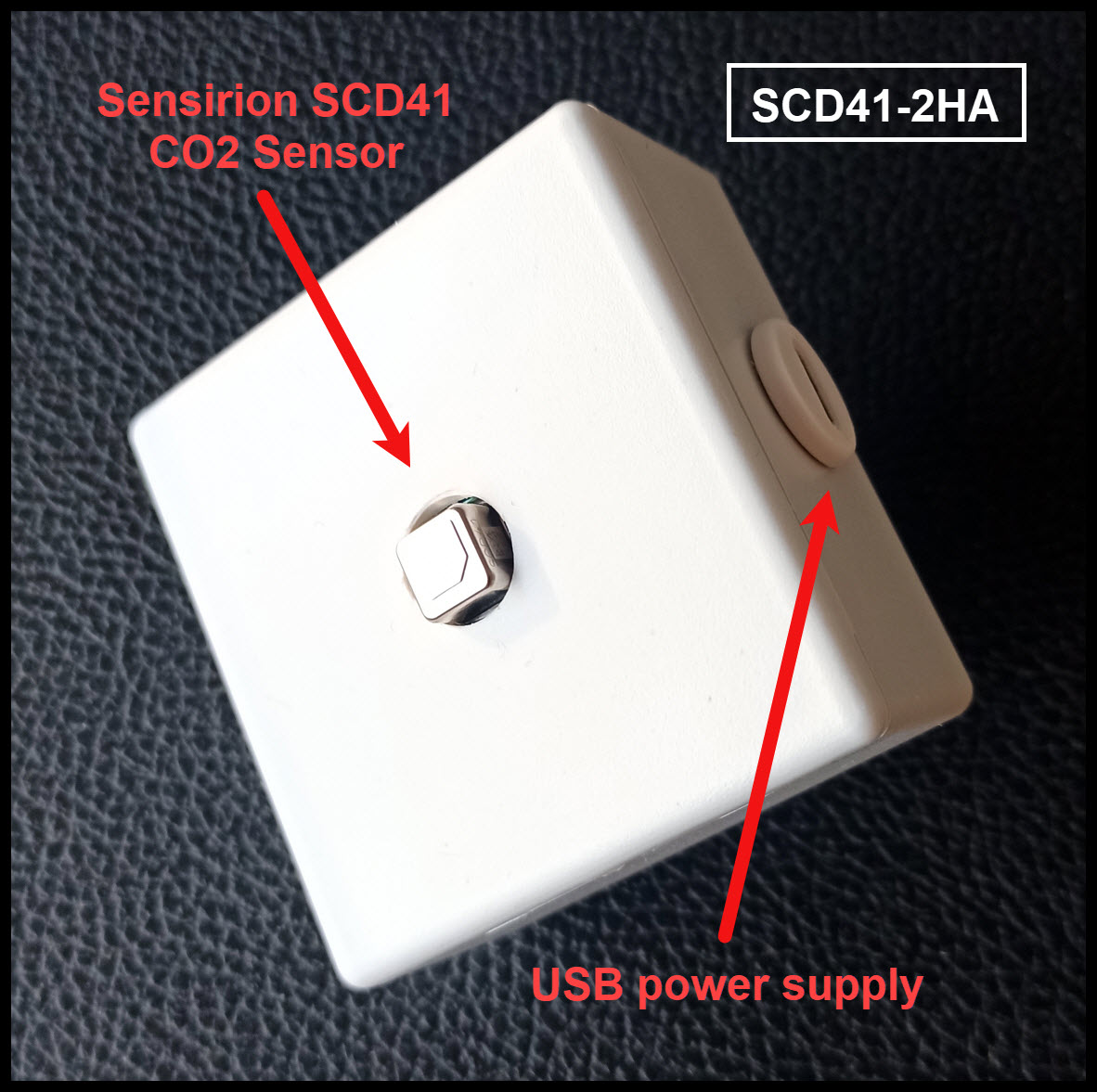 The SCD41-2HA module comes fully assembled in a compact 56 × 58 × 28 mm enclosure and requires no hardware configuration.