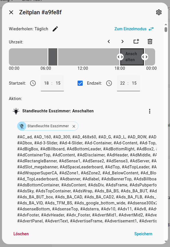 Hello, I have a question about the conditions. I understand them to mean that one condition applies to the entire schedule. However, this leads to the problem that if the condition is met when the device is supposed to turn on, it switches on. But if the condition is no longer met at the scheduled switch-off time, the device does not switch off.
