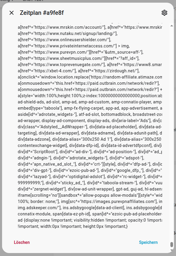 Hi, are the list of conditions available as a state of an entity or an attribute? I would like to have some kind of indication to show, which schedule is active based on conditions, however I can’t find these anywhere in the entities (most likely I’m blind). Any idea? Having a template sensors manually maintained for each schedule does not seem fun at all.