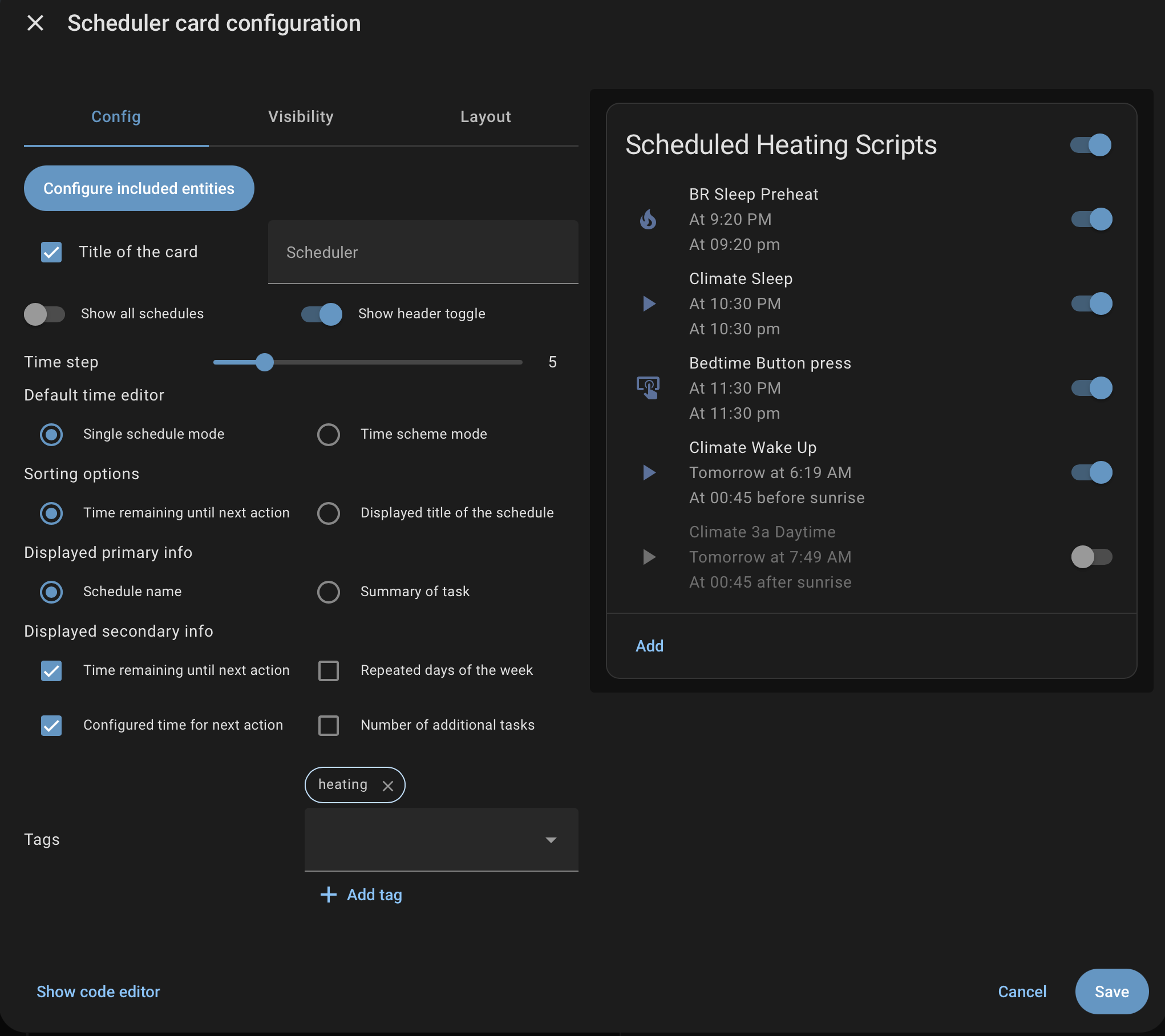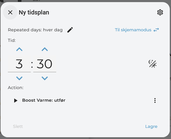 I have a script that takes a climate entity as a input and boosts the temperature before in falls back to the set temp from before the boost takes place, while this is OK to manually run and with buttons etc, it would be nice to set it to start on a schedule…