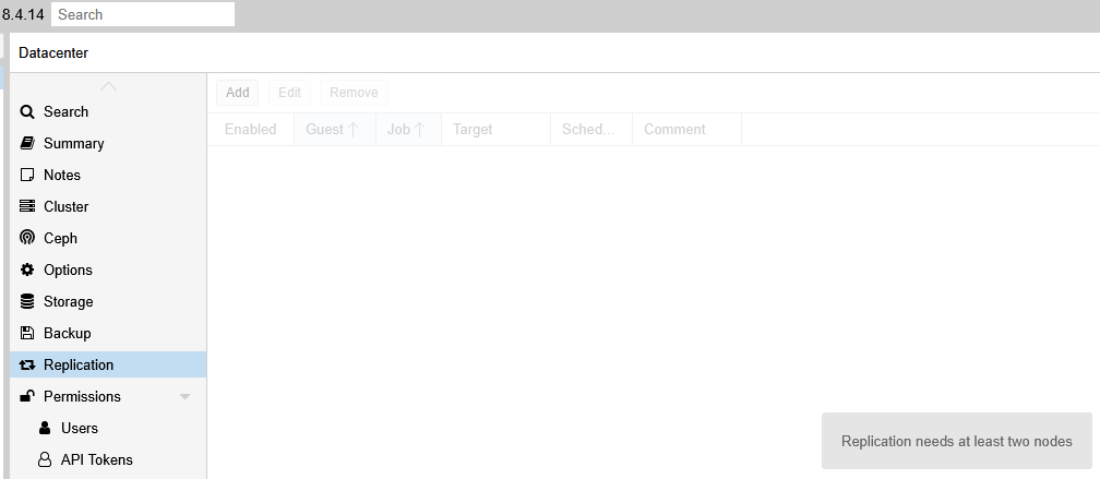 Proxmox UI > Datacenter > Cluster: