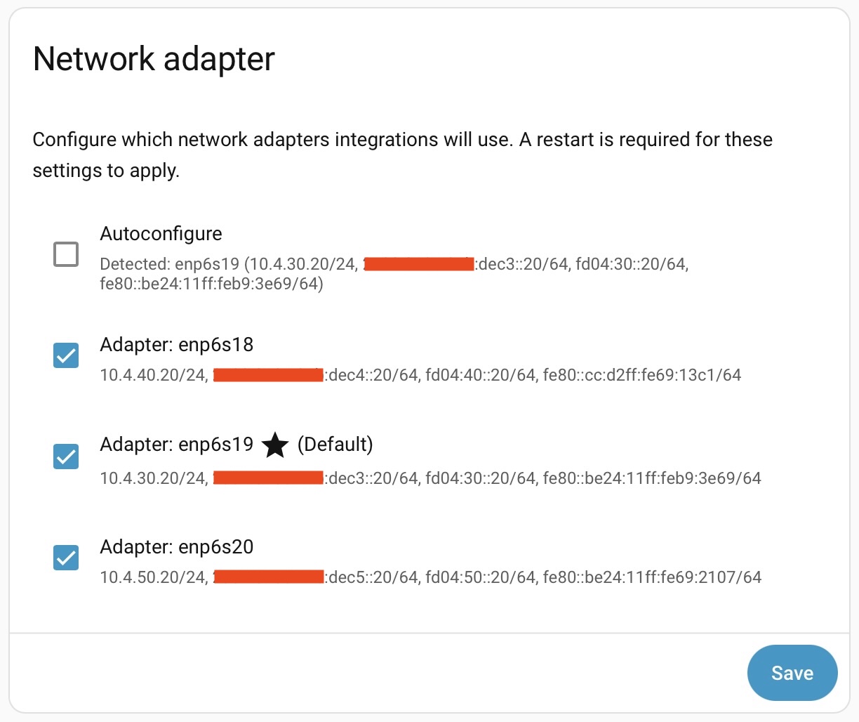 Needless to say this has been frustrating since the docker-compose folks have weirdly ignored bug reports regarding this issue for the last few years. In spite of this, I was hoping there was a way to simply have HA’s default adapter be selectable – from the UI or otherwise.