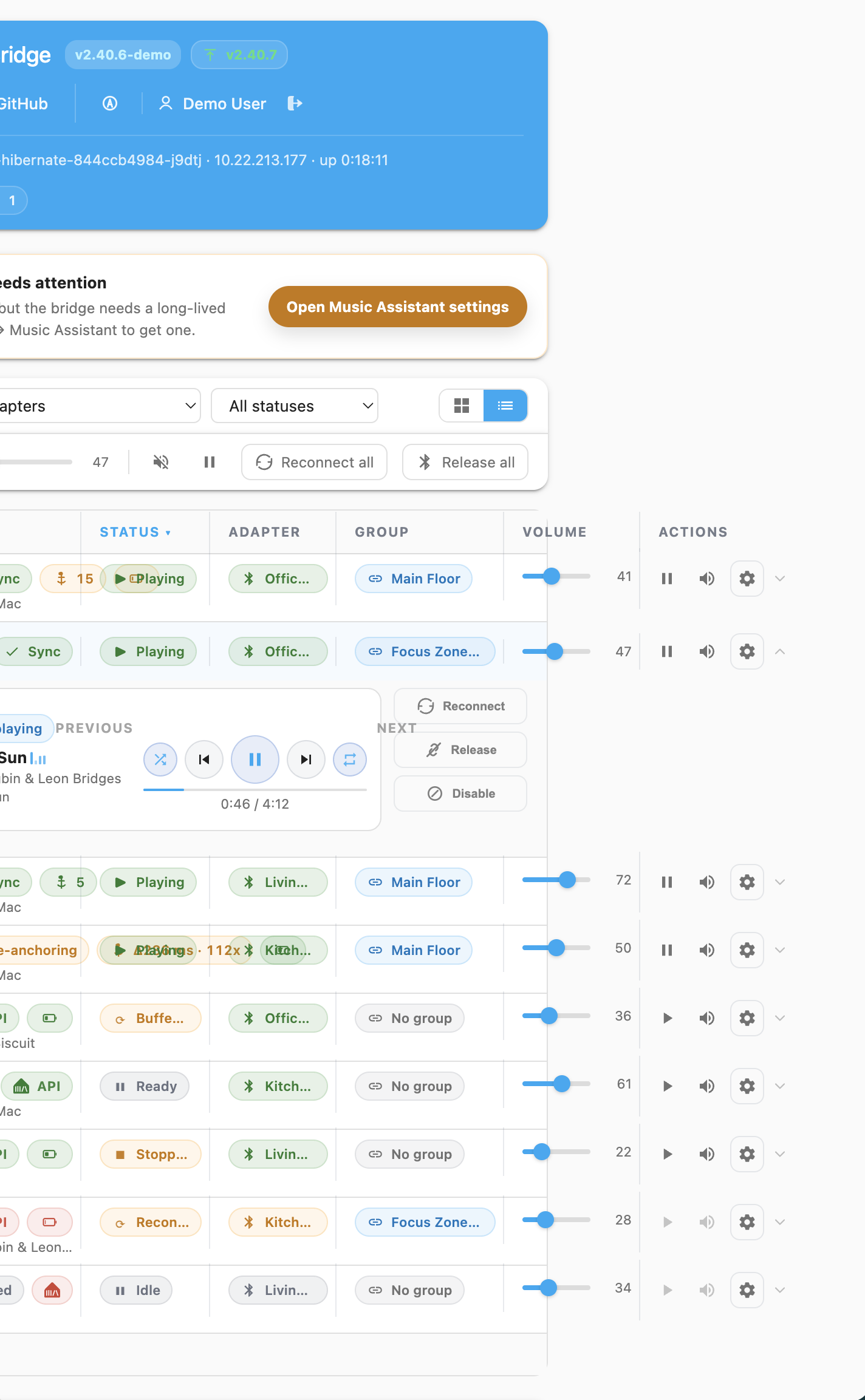 Changing the permissions, I can now connect to MA, and can connect to the speakers, but I get a JBL Flip 6 @ rpi-outsidespeakers lost bridge transport error, but I do get an audio sink.