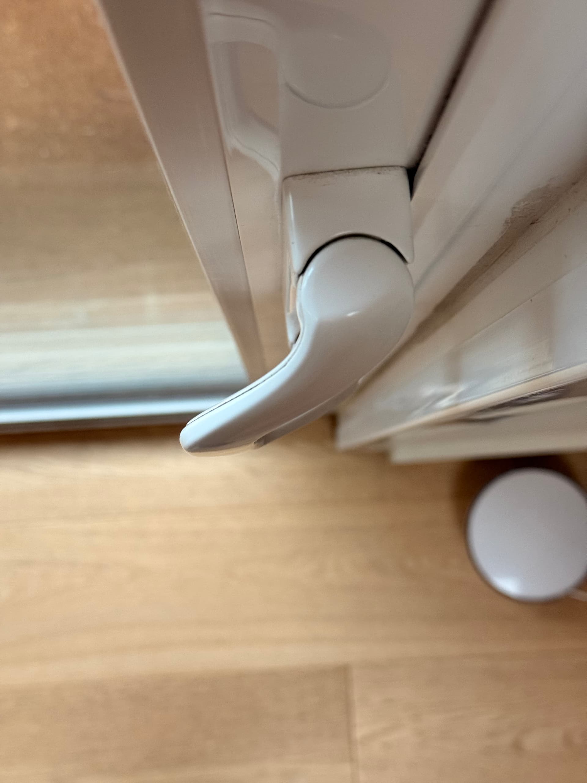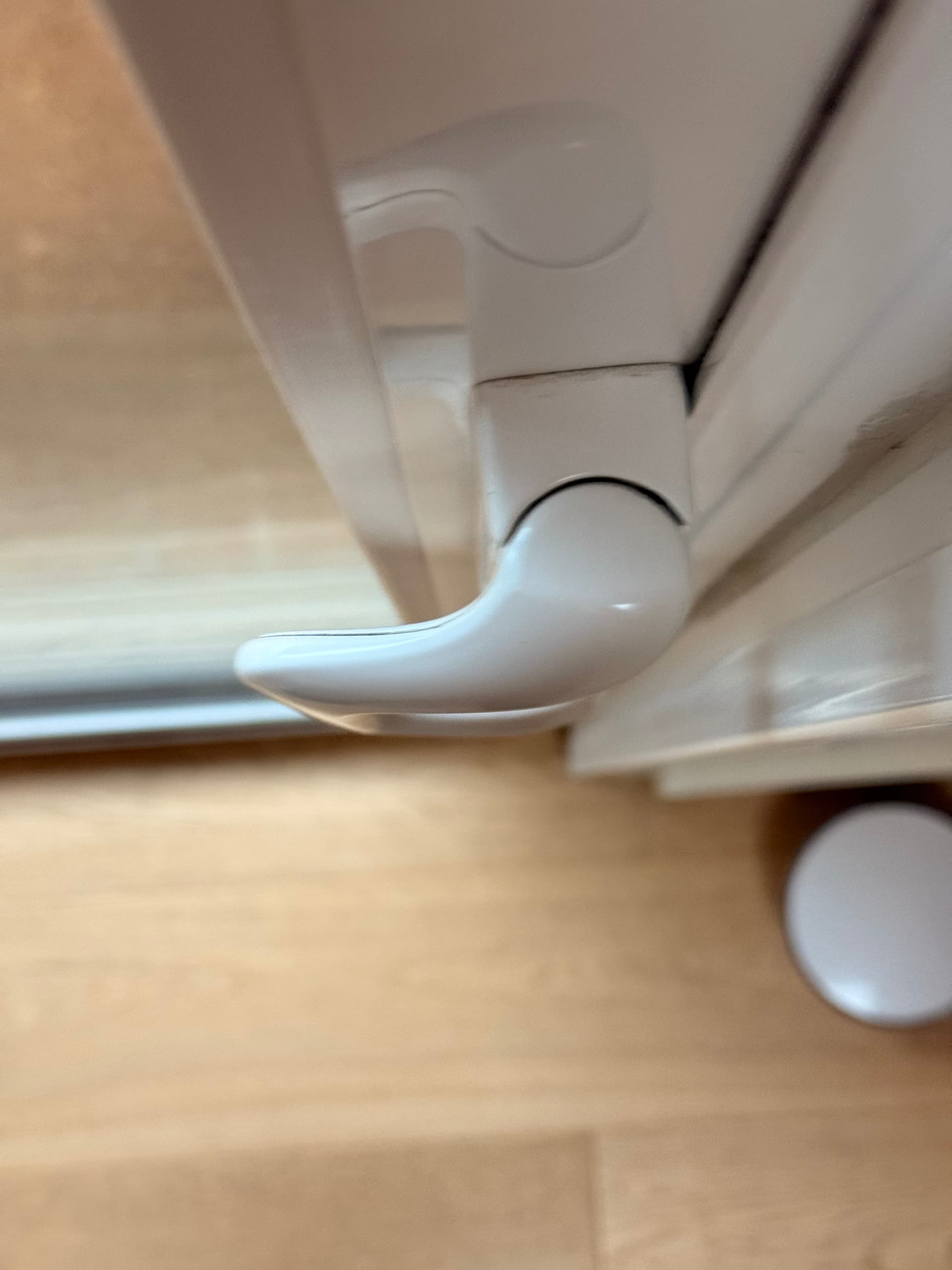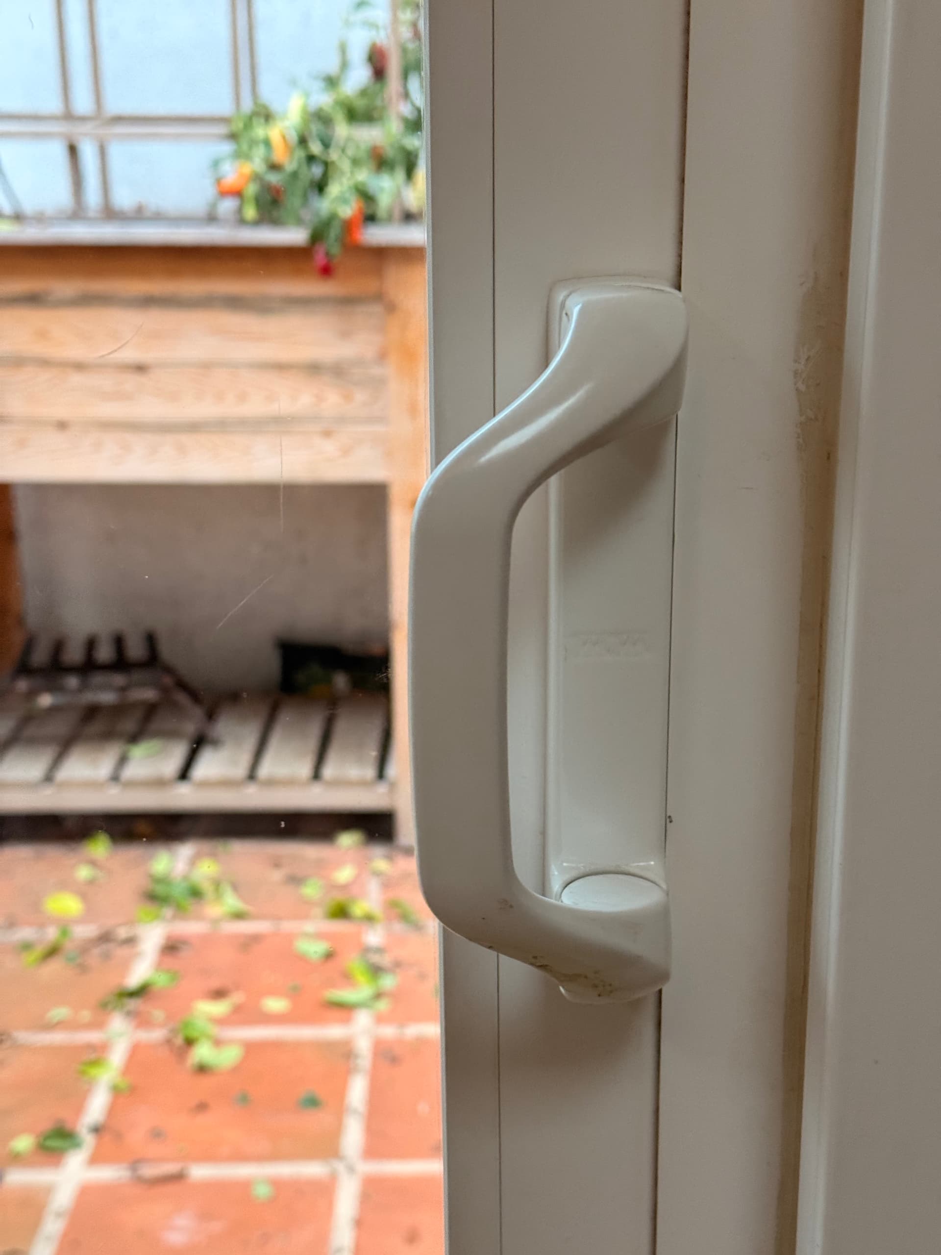 We have these sliding glass doors to the patio, and the doors lock with a handle that folds in toward the door, so in the locked state, the rotation changes at a hinge, and the far edge of the handle itself is slightly closer to the glass of the door.