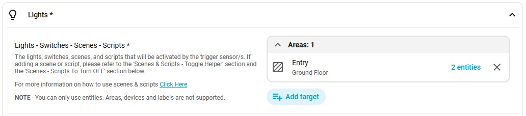 Home Assistant changed the Target Picker in 2025.11, making it harder to select entities by choosing Area β Device β Entity. The colour identifiers (orange, blue, green, or grey) were also removed. You now need to know your entities and select them directly.