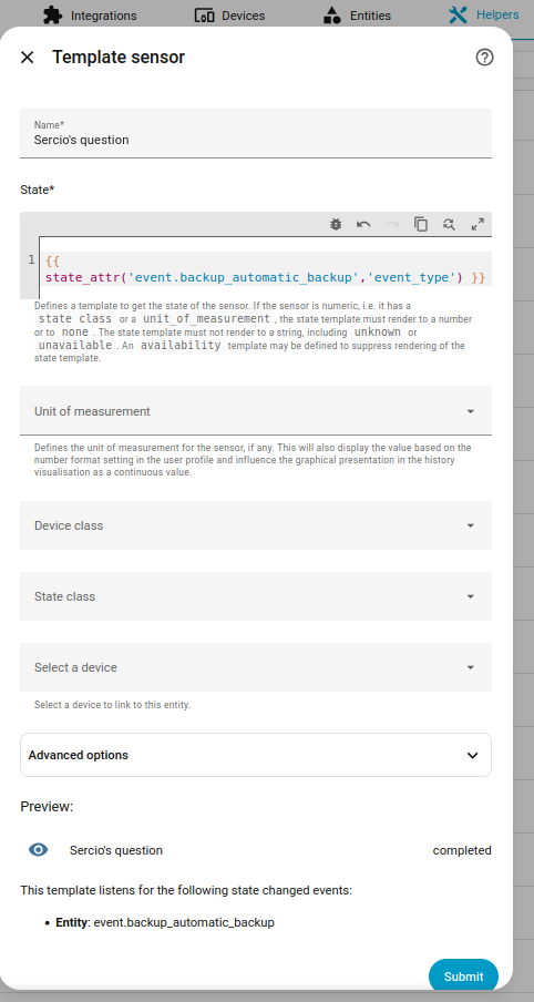 sorry if my question is too simple, i’m not jet expert. I need to create a sensor with the last event_type of Automatic Backup event (Completed, failed, …). I receive always Unknown…
