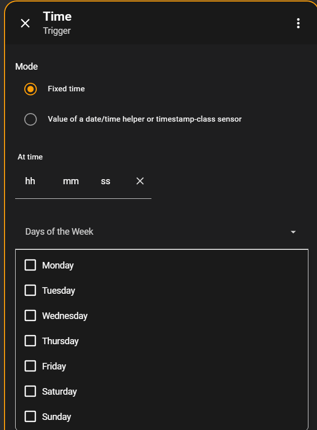 Well, I got so far to be able to set a time (with an offset) and date via a card in one of my dashboards and an automation, but I’m now looking how I can select multiple days (e.g. every Monday and Tuesday at 6.30AM). But I’m already glad I got this far ![]()