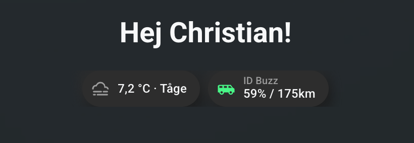 I’m using Sections for my dashboard. In the header card I have added badges, and I’m using a theme that adds a little shadow to each card.