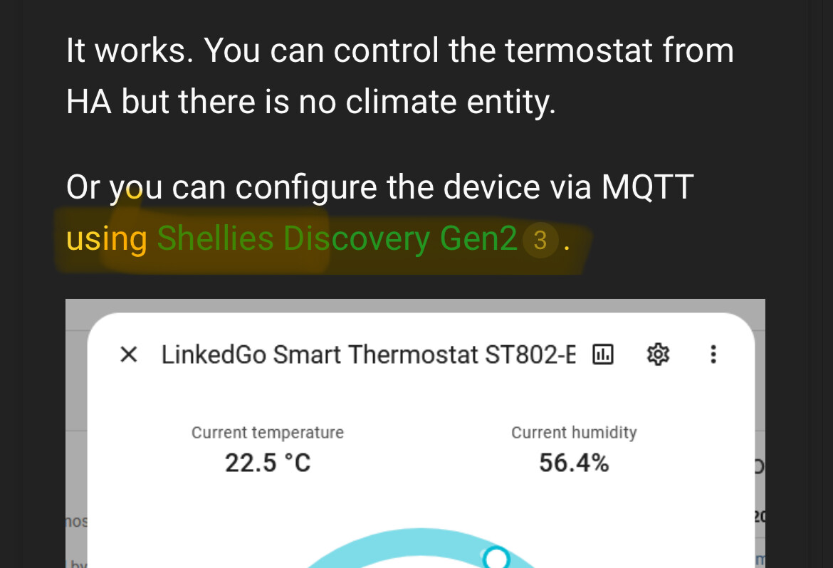 Thanks, the Shellies Discovery Gen2 works great with this thermostat!!