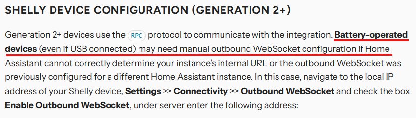 Gen3 devices have BLE, RPC and outbound WebSocket enabled, and appear fine in HA otherwise.