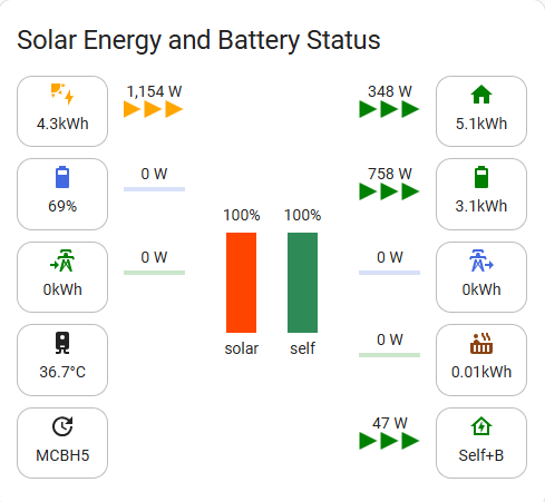 Where a hybrid inverter does continue to run at night, the power used may just still be ignored and not reported by the inverter. As you have already said, you have two systems one of which shows the power used, and for you the power can come either from the grid or from the battery, depending on settings. In the HA world, the ‘system’ is the ‘home’, and Solar Power and Grid are outside this - hence all solar power is inwards only. Batteries are also typically outside the ‘home’ and reported separately. This leads to the question - where is the Inverter as a device (and power-user)?