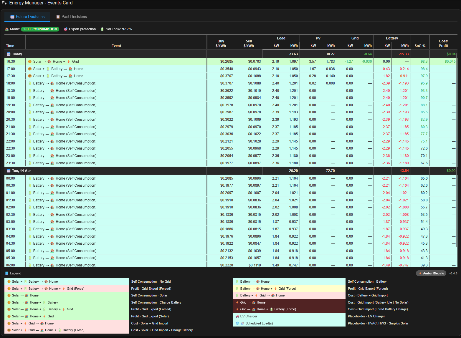 Curerntly being worked upon, but if your a Home Assistant Energy Optimiser (HAEO), EHMASS (still ironing some bugs / working around its lack of some sensors) or Energy Manager (www.energymanager.com.au) user, for automating your SigEnergy then also worth looking at, with work to get these tables working with Genergy Dashboard.