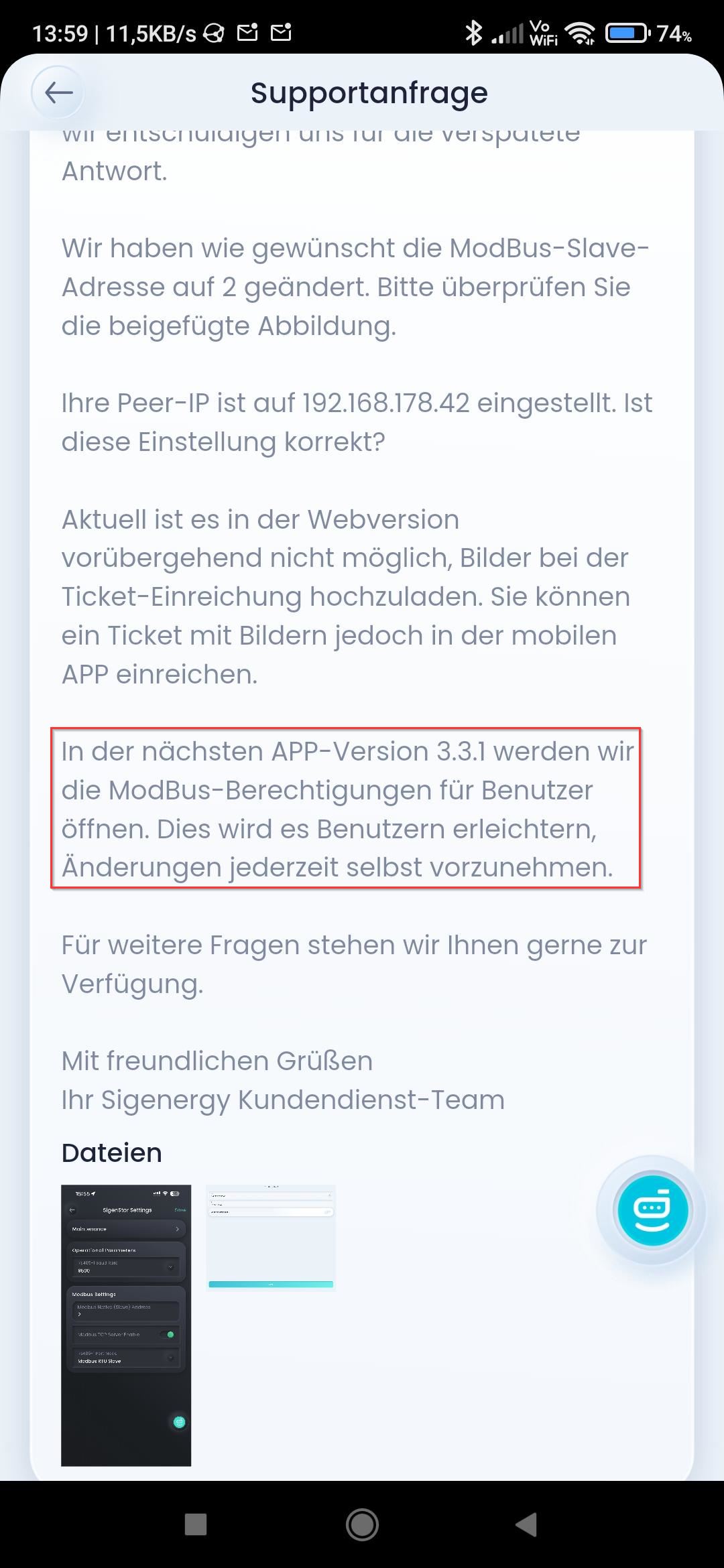 But I don’t see the slightest hint of Modbus in the App. However I could finally connect to the Modbus-Interface in HA and I can see the values now. This cost me some discussion with the technical support and some notification (what is the IP of the primary inverter?), but in the end it worked.