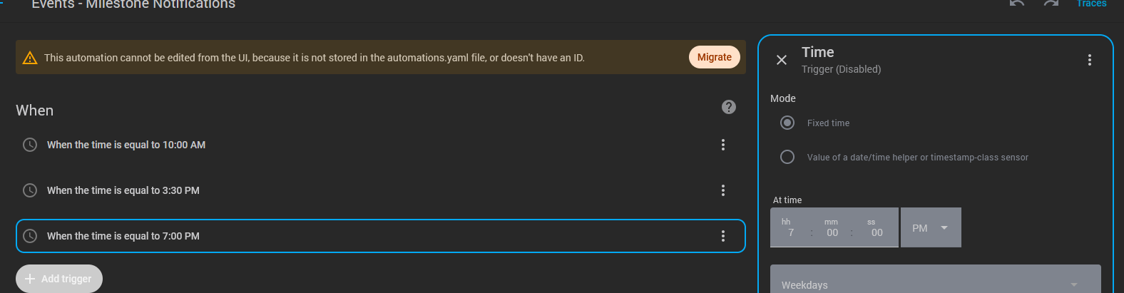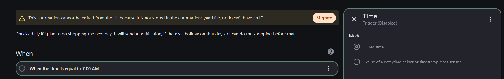 They are not though. I don’t want them migrated to the UI, that’s not the problem. I’ve always created them this way and it has always worked expect this one new automation doesn’t trigger for some reason.