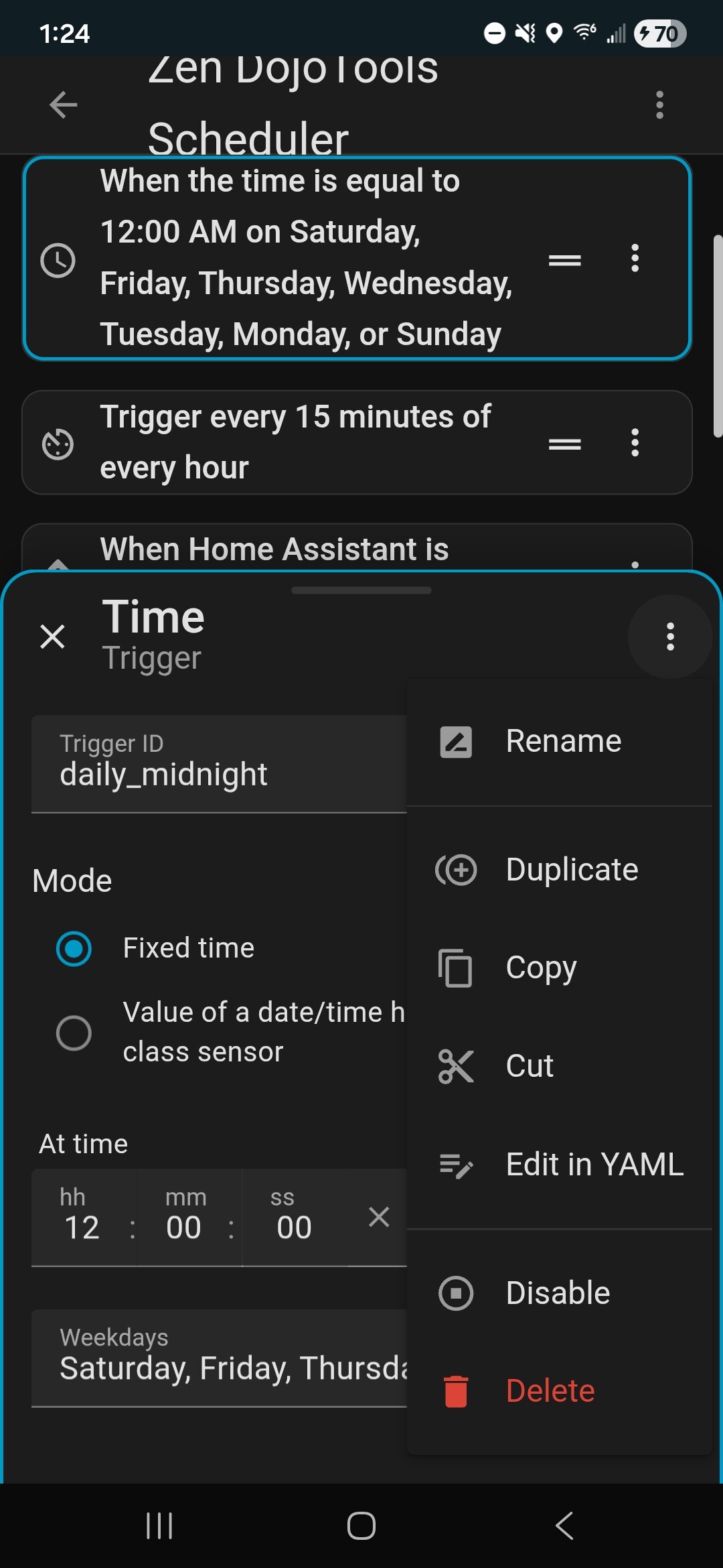 I just confirmed that the via UI duplicated automation did trigger. I’ll try changing the time on my original automation next to something in the next minutes.