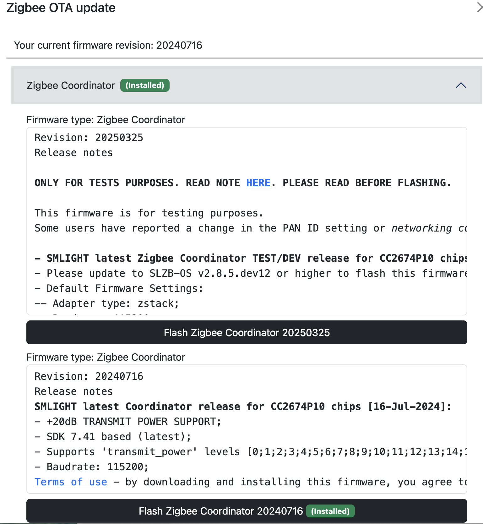 Zigbee Coordinator: 20250212