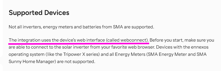 Reading the whole article, I know see “Devices with the ennexos operating system (like the Tripower X series) and all Energy Meters (SMA Energy Meter and SMA Sunny Home Manager) are not supported.”