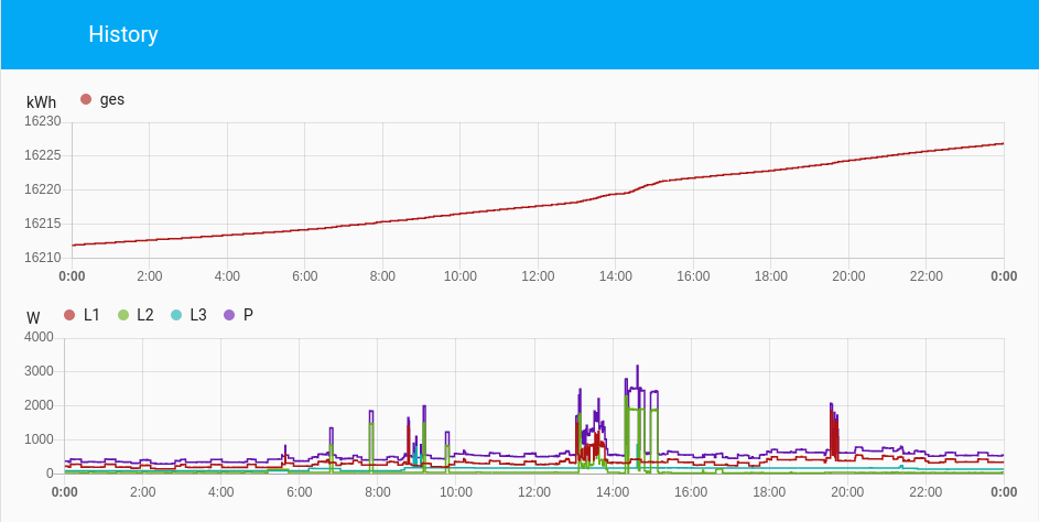 When I recently had to do some rewiring of my “official”, dumb electricity meter anyway, I had the opportunity and space to put in another, smart meter I bought myself directly next to it. My self-bought meter basically gives me the opportunity to get a live feed of my electricity use, split up by the 3 phases.